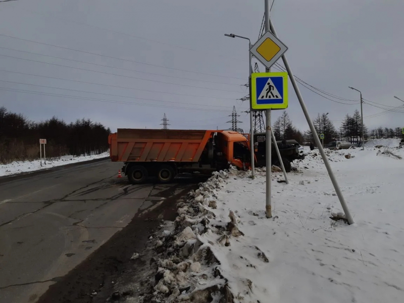 В Магадане грузовики столкнулись на Кожзаводской